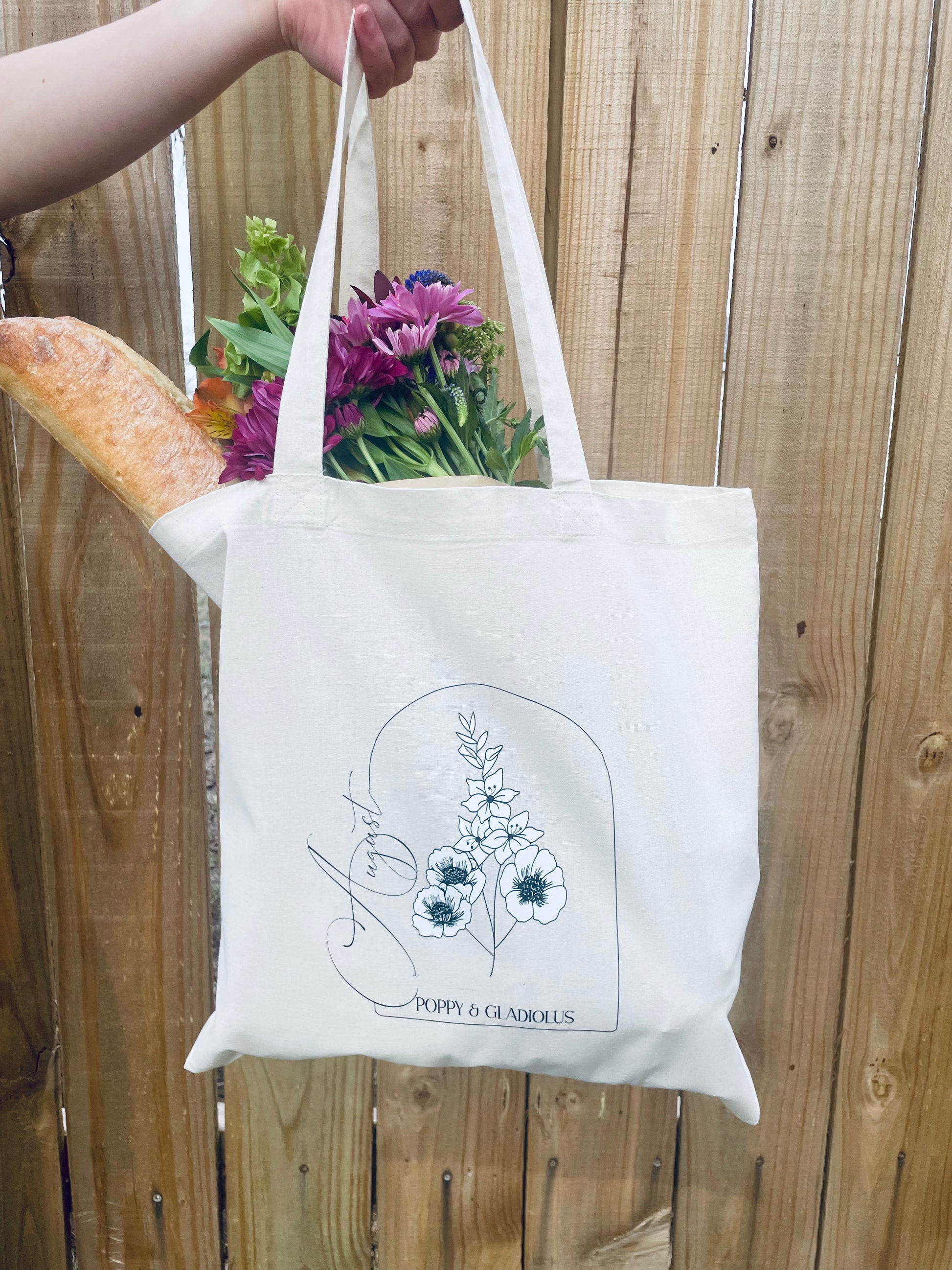Made of durable canvas, this tote features August's birth month flowers of Poppy and Gladiolus - perfect for carrying your essentials in style. Show off your unique personality with this playful accessory!
