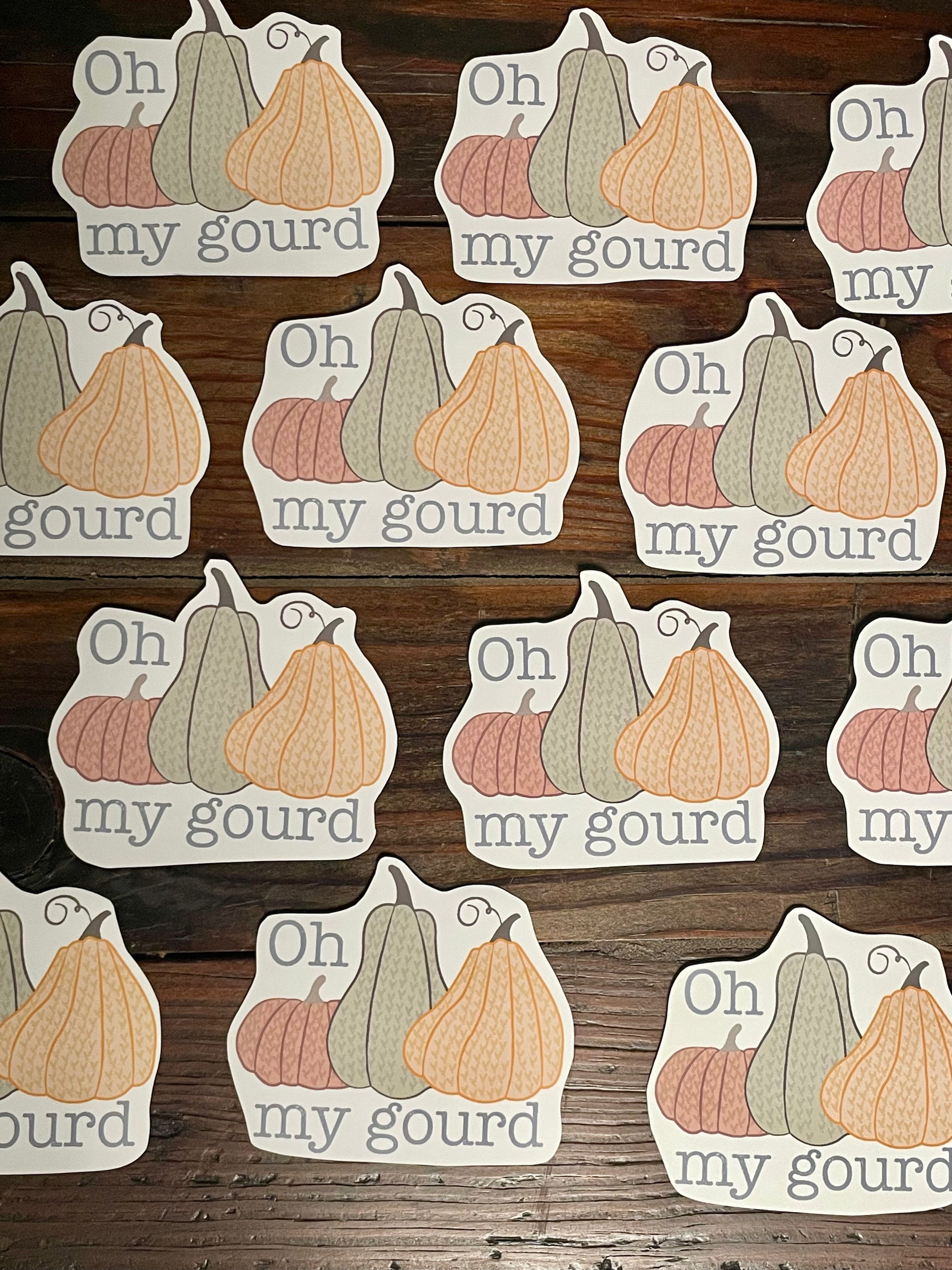 Celebrate autumn vibes with the "Oh My Gourd" sticker, featuring a delightful collection of knitted gourds. Perfect for adding a cozy, crafty touch to your laptop, water bottle, or planner, this playful sticker brings warmth and whimsy wherever you stick it. Embrace fall fun one gourd at a time!