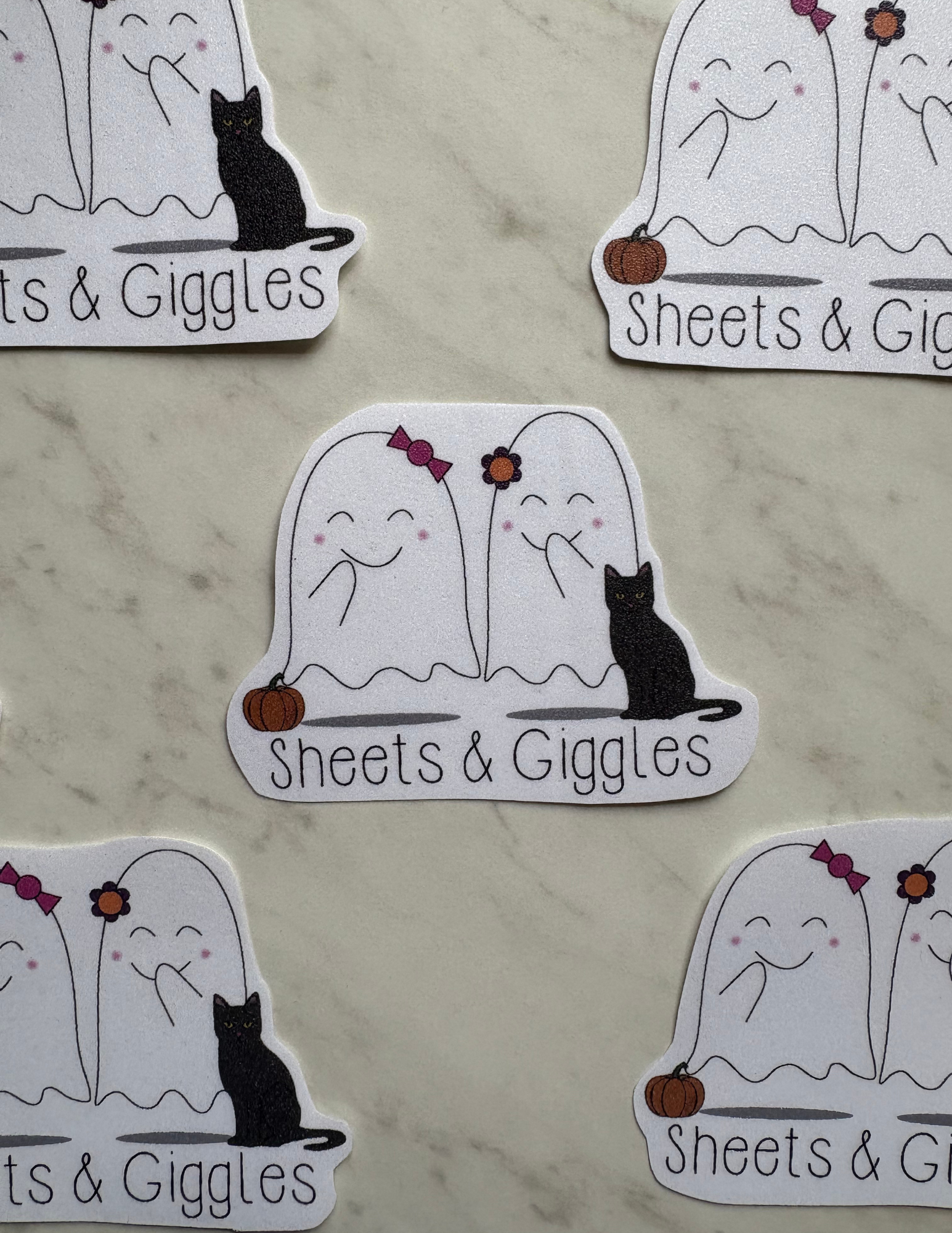 Add a touch of fun to your belongings with the Sheets & Giggles Sticker! Featuring a playful ghost pun, this sticker brings a lighthearted vibe wherever you stick it. Perfect for laptops, water bottles, or notebooks, it’s a quirky way to share some smiles and giggles every day.